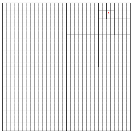 이 평면은 2^5 x 2^5의 크기(N=5)고, A라는 점의 좌표는 (2,26)이다.